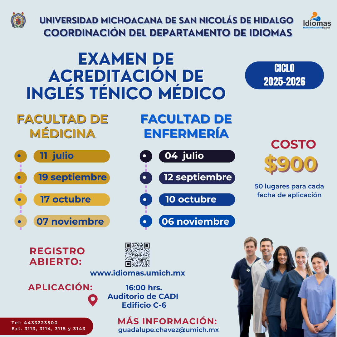 medicina e inglés. La calificación mínima aprobatoria es de 80. Posteriormente se le