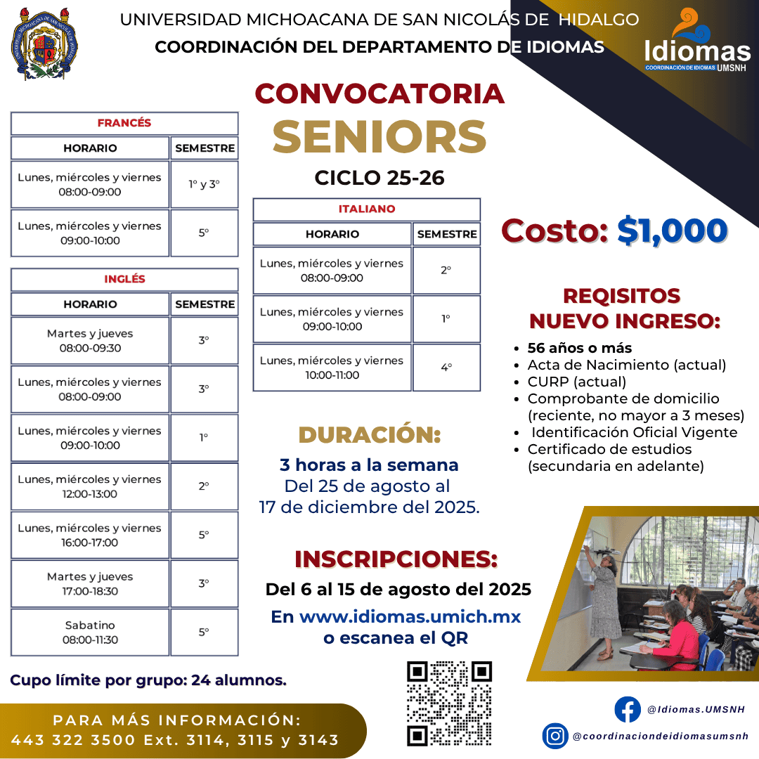 Es un programa especializado en la atención de adultos mayores con el deseo de involucrarse en el aprendizaje del Francés, Inglés e Italiano en una atmosfera propicia para sus características de enseñanza aprendizaje