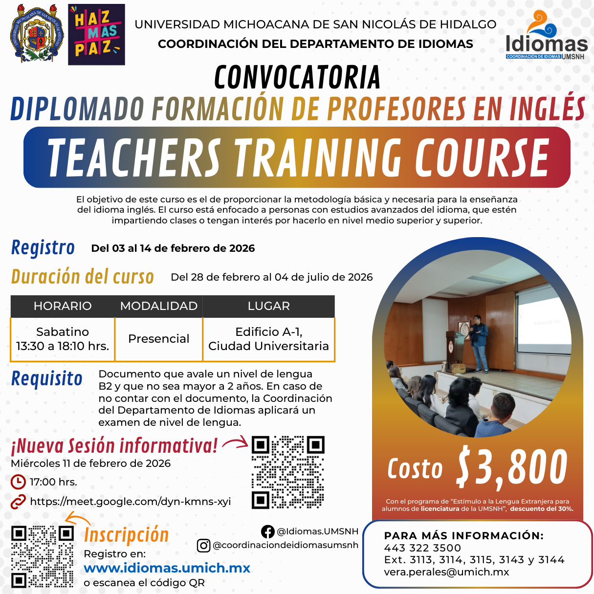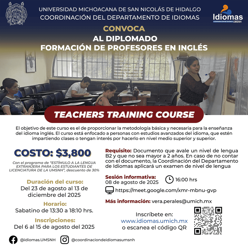 enseñanza del idioma inglés. El curso está enfocado a personas con estudios avanzados